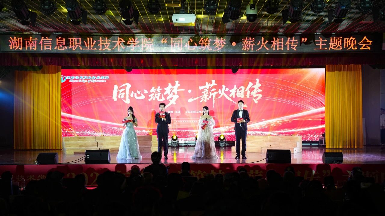 随后的AIGC视觉秀《未来校园》呈现智能实训楼、产教融合产业园等数字化场景,勾勒出可触可感的明天。合唱《新程之光》响起时,全场观众点亮手机灯光,星河般的海洋寓意每个湘信人都是未来之光。在校友祝福VCR《薪火相传》与全场校歌合唱中,晚会温暖落幕。薪火相传,正照亮新一轮征程。