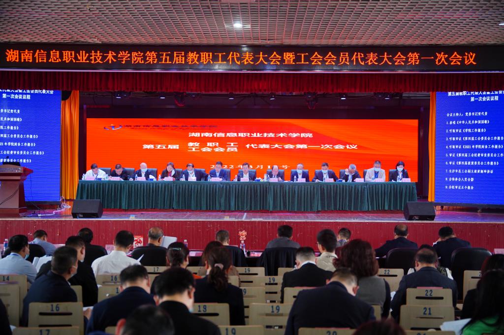 3月12日,beat365召开第五届教职工代表暨工会会员代表大会第一次会议,院领导贺代贵、陈剑旄、苏基协、王虎成、朱焕桃、刘志红、余求根、姚庆武、罗述权、谭立新、蔡琼、廖继旺,长沙市总工会党组成员、副主席黄渐坤和市直属基层工会工委谢志豪出席会议,大会主席团成员24人与正式代表、特邀代表、列席代表共120余人参加大会。