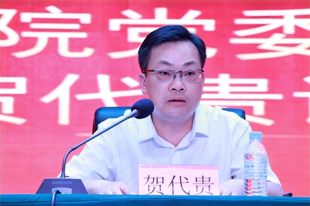 学院党委书记贺代贵在讲话中代表学院党委、行政,向全校广大青年师生致以节日的问候,向受到表彰的优秀集体和先进个人表示热烈的祝贺,向长期以来关心、支持团学工作的各位老师、同学,表示衷心的感谢。他表示,全校青年师生要牢记习近平总书记嘱托,坚定不移听党话、跟党走,立志做有理想、敢担当、能吃苦、肯奋斗的新时代好青年,在校期间增见闻、强本领,毕业后择好业、创新业,将“小我”的成长期许,融入报效祖国、服务人民的火热实践,成为“眼中有光”“脚下有路”“肩上有责”“心中有德”的“四有”青年。他寄语学院青年师生不忘初心使命,坚定不移跟党走,继续发扬“党有号召,团有行动”的优良传统,在技能比拼中尽显青春风采,在志愿服务中播撒青春热情,在强省会战场上贡献青春力量;要坚定理想信念,传承奋斗担当,深化“青年大学习”行动,常态化开展理论学习、红色教育、实践教育、青马工程,把青春奋斗融入党和人民事业、将个人成长融入城市改革发展,为加快现代化建设凝聚青春智慧、贡献青春力量;要锤炼过硬本领,勇于开拓创新,结合自身专业,把报国之志转化为我们的行动之实,努力成为高素质技术技能人才,大国工匠、能工巧匠,为实现中华民族伟大复兴的中国梦而不懈努力。