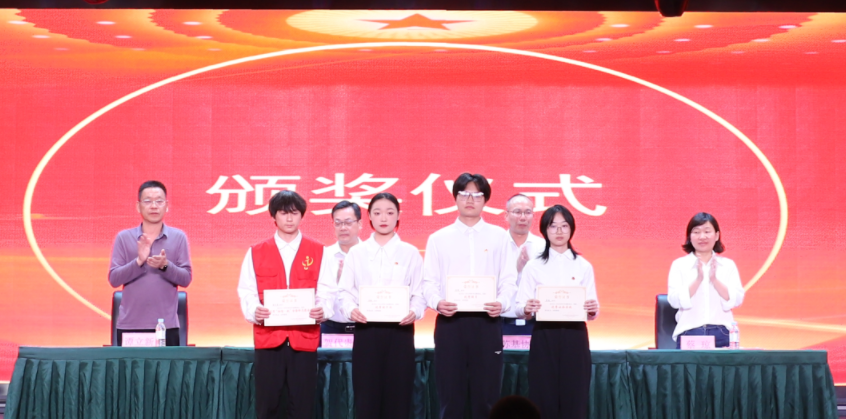 表彰大会在庄严的国歌声中拉开帷幕。大会为获奖的1个“五四”红旗团总支、15个雷锋式文明团支部、4个优秀社团、2支优秀“湘信·我”学雷锋志愿者服务分队和140名优秀团员、133名优秀团干、31名优秀志愿者、18名优秀社团个人、18名优秀社团干部、28名优秀社会实践个人(作品)、17名自强之星和27名向上向善好青年颁奖。优秀团干代表吴璇在发言中说道,作为共青团员的我们应该珍惜荣誉,再接再厉,团结和带领广大团员青年高举五四的旗帜,争当先进,以饱满的热情、蓬勃的姿态,锐意进取,不断进步,将“家国共担、手脑并用”的校训精神发扬光大。