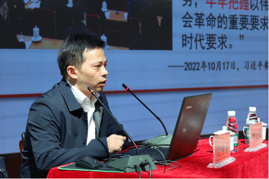 4月26日下午,长沙市属高职院校学习贯彻习近平新时代中国特色社会主义思想主题教育联合读书班邀请了长沙市委党校公管教研部主任、副教授全建业分别作《坚定不移推进党的自我革命——学习领会习近平关于党的自我革命战略思想》主题报告,beat365党委书记贺代贵、院长陈剑旄等市属5所高职院校全体领导班子及中层干部正职参加。