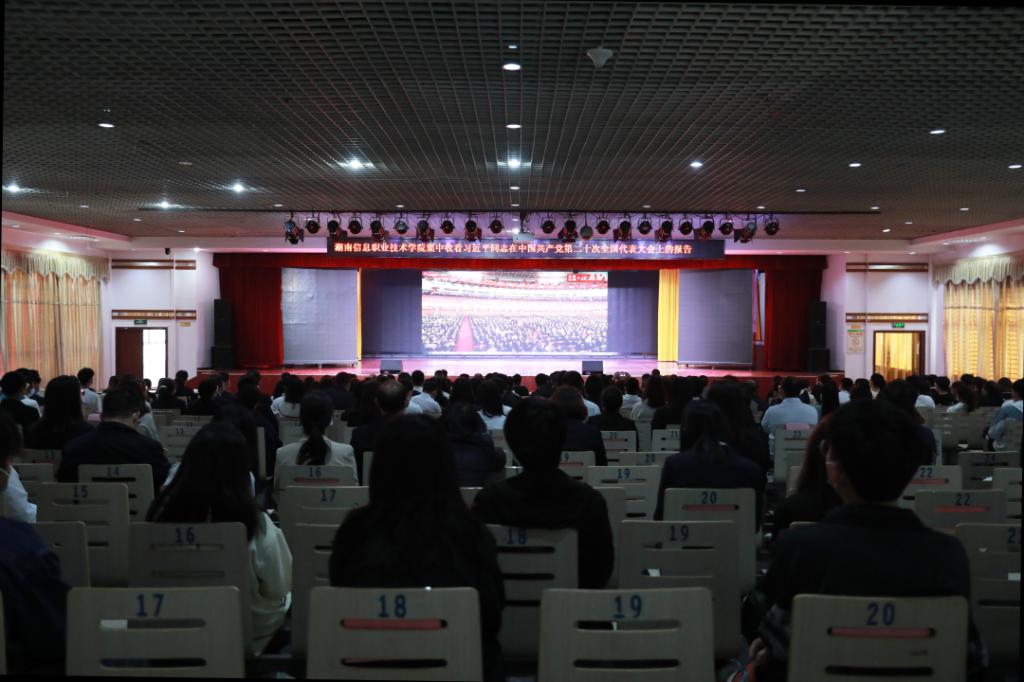党委书记贺代贵表示,中国共产党第二十次全国代表大会凝聚了全党的智慧和力量,擘画了未来祖国发展宏伟蓝图,目标紧扣中国共产党人初心和使命,主题振奋人心,催人奋进。全体师生要紧跟习近平同志报告中绘就全面建设社会主义现代化国家宏伟蓝图,自信自强、守正创新,踔厉奋发、勇毅前行,思想对标对表,凝聚思想利器,坚定笃行逐条深学,迅速掀起学习热潮,在服务长沙发展中找准融合方向,在提质培优中增强特色优势,全力推进改革创新,努力将学校建设特色鲜明的地方性应用型高水平院校,为“强省会”提供智力支撑和人才保障。