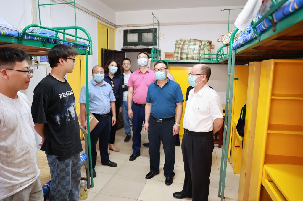“你是哪里人?”“开学防诈知识有了解吗?”“对大学生活有没期盼或规划?”贺代贵在走访中详细地了解了新生生源地、专业和宿舍环境,要求同学们在课余时间,能用脚步去丈量祖国大地,用内心去感应时代脉搏,踔厉奋发向未来。“因为疫情防控要求,家长未能进入校园,同学们要及时给父母报平安,让家长们安心、放心。”陈剑旄嘱咐道。他也指出新生要志存高远的豪情壮志和脚踏实地的求学态度,逐梦青春赛道,跑出最好成绩。