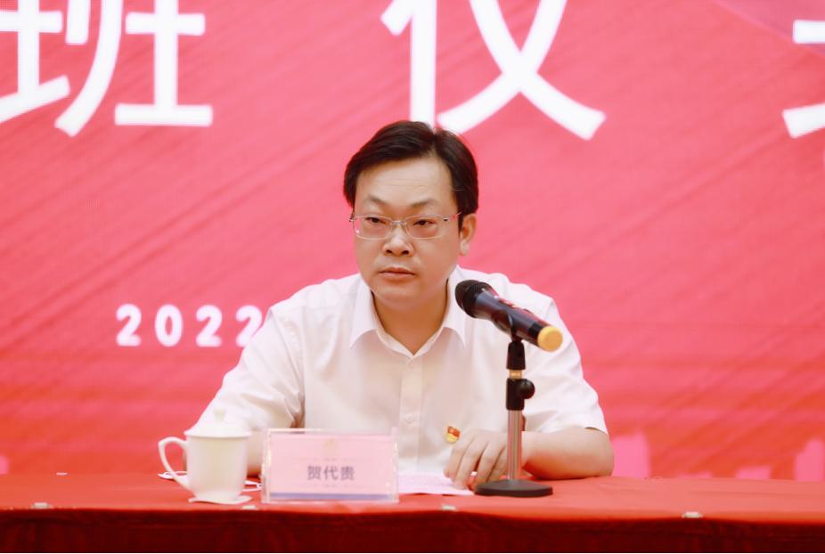 贺代贵在开班仪式中作《以更强担当、更实作风、更大作为笃定前行,为实现“三大攻坚目标”而奋斗》的讲话。他指出,2022年时间过半、任务过半,学院内涵建设、新校区建设等各方面工作取得了显著成效,但与省市对学院高质量发展的期待仍需努力。此次培训,来到“半条被子”故事的发源地,要学好用好这堂湖南党员干部砥砺初心的“必修课”,助力学院在更高层次更高境界上笃定前行。他强调,要以担当之勇笃定前行,做攻坚克难的行动者和奋斗者,以钉钉子精神抓工作落实。要以实干之风笃定前行,“敢干”“实干”“苦干”和“巧干”,务实功、出实招、求实效。要以作风之绩笃定前行,让主动担当蔚然成风,以实绩助推学院高质量发展。他要求,学院关键少数,要以上率下巩固干事创业良好风尚,准确把握新发展阶段,加快构建新发展格局,以实干实绩实效,彰显忠诚担当,确保学院“三大攻坚目标”顺利实现。