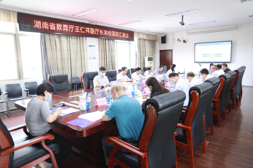 5月30日下午,省教育厅副厅长王仁祥来beat365调研指导工作,省教育厅职成处副处长谢桂平、省教育厅职成处四级调研员何国清、市教育局副局长杨庆江、市教育局高教处处长丁郭陪同,beat365党委书记贺代贵、院长陈剑旄等院领导及部分中层干部参加调研。