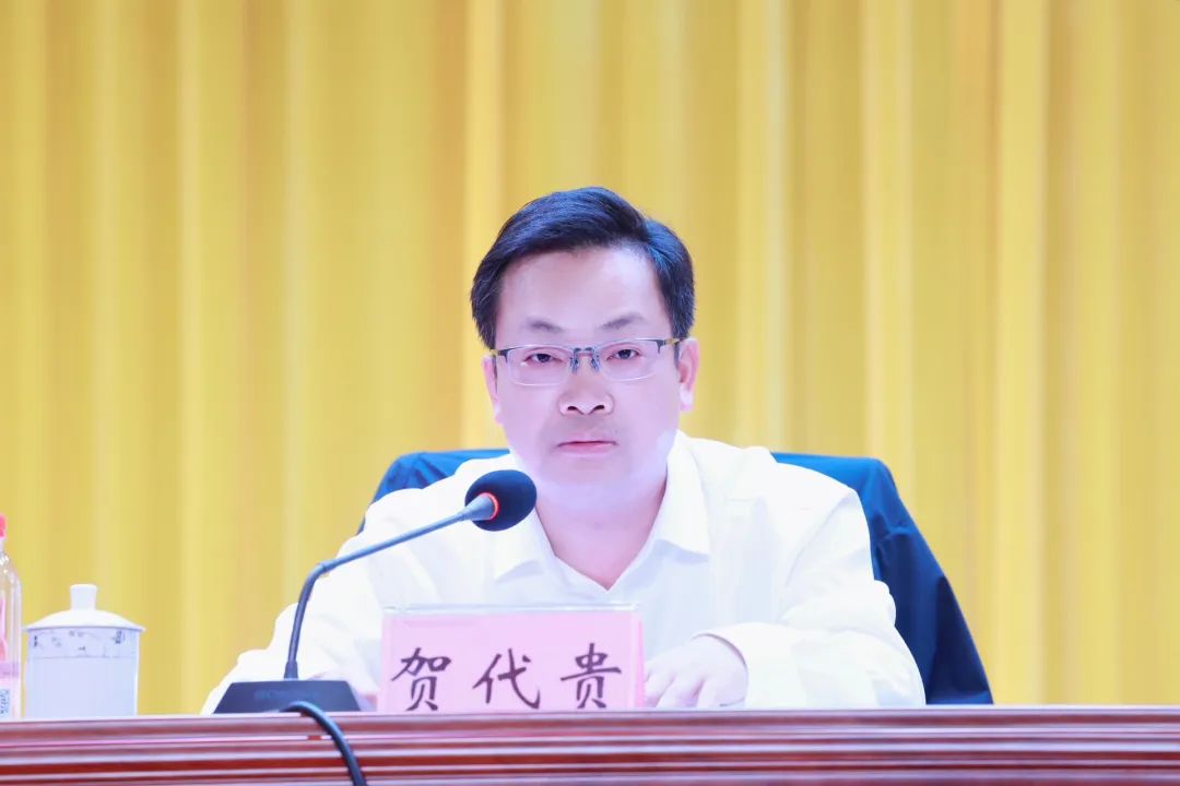 贺代贵作题为《携手同心勇争先 奋楫笃行向未来 全面启航全国一流高职院校新篇章》的讲话。他代表学院党委对大会的胜利召开表示热烈祝贺,对为学院改革发展积极建言献策的全体代表表示衷心感谢。他指出,要坚决落实好2024年学院重点目标任务,将干事创业的能力提起来,将敢为人先的势头扬起来,将真抓实干的作风立起来,将团结奋斗的合力聚起来,牢记初心使命、抓牢抓实各项重点工作、保持锐意进取的魄力与真抓实干的定力,持续扛牢“两个统筹”使命任务,展示更大格局,共担更大责任,争作更大贡献,扎实落实好上级和学院部署,迎难而上、奋勇攻坚,为学院事业高质量发展汇集磅礴力量。