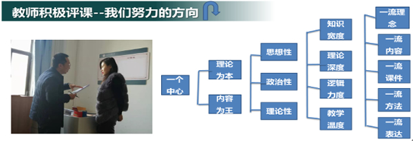 张秀峰老师认为,思政课教师既要有知识的宽度、理论的深度、逻辑的力度,也需要教学的温度。教学语言须要简洁性、富有性、时尚性和趣味性,课堂设计要采取鼓励教学。