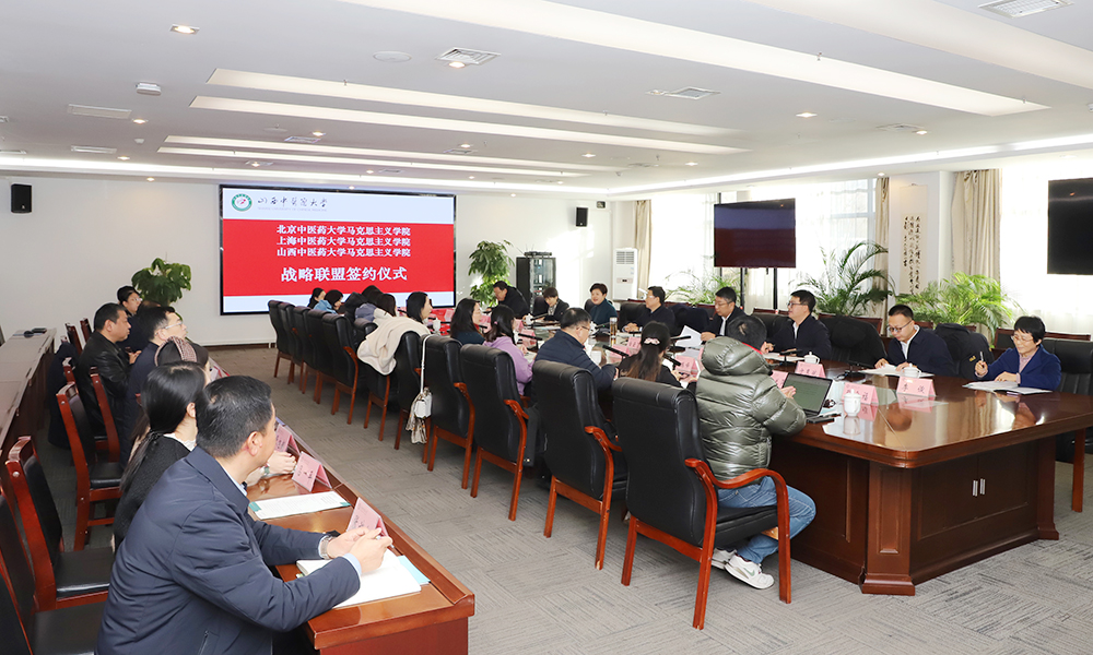 王宏伟代表学校感谢省委教育工委、省教育厅长期以来对pp电子游戏官网工作的支持和帮助,对北京中医药大学pp电子游戏官网邱仁富院长一行、上海中医药大学pp电子游戏官网王芳院长一行的到来表示热烈的欢迎,对三所中医药大学pp电子游戏官网建立战略联盟表示热烈的祝贺。他指出,战略联盟的建立,是深入学习贯彻习近平总书记重要讲话精神,贯彻落实全省教育大会精神,扎扎实实办好pp电子游戏官网,认认真真落实好立德树人根本任务开展的一项重要的工作。期望三方在合作共建特色pp电子游戏官网、提升思政教育质量和水平等方面持续发力,强化三校pp电子游戏官网在思政教育教学、思政课程与课程思政、教师队伍建设、教学科研、实践教学等方面的交流合作,努力开创“资源共享、马院共建、科研共进”战略合作新局面。pp电子游戏官网要加强向北京中医药大学、上海中医药大学多层次、多方面、多渠道的学习交流合作,充分挖掘山西作为革命老区的红色资源,传承弘扬太行精神、吕梁精神等革命文化,通过建立优势互补、资源共享、互惠互利的合作机制,共同探索马克思主义理论教育、学科建设的新模式、新路径,推进“大思政课”建设取得更多成果。