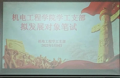 为做好新形势下的党员发展工作,严把党员发展关口,保证党员发展质量,做好党员发展工作。按照支部工作进展,2022年5月9日中午十二点,机电工程学院学工支部组织了党员拟发展对象考试,本次考试设置线下考场于北三102教室,所有结业的入党积极分子参与此次线下考试。