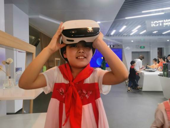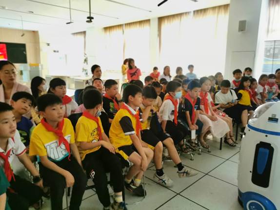 第一站来到的是望城区大汉红馆,大汉红馆分为红馆、蓝馆、绿馆、橙馆四个不同主题,同学们在这里感受红色文化,感悟革命先烈的精神;第二站来到的是工程机械与建筑馆,工程技术与建筑之间的碰撞,科技感十足,同学们赞不绝口;第三站来到的是华为ICT馆,在这里见证2G-5G的变化,见证智能家居的新颖,同学们争先恐后的尝试AR技术,看科幻世界的精彩;最后一站来到的是信息技术课堂,与机器人小胖来一场人工智能与人的交流,同学们和小胖老师一起进行舞蹈,场面十分融洽。