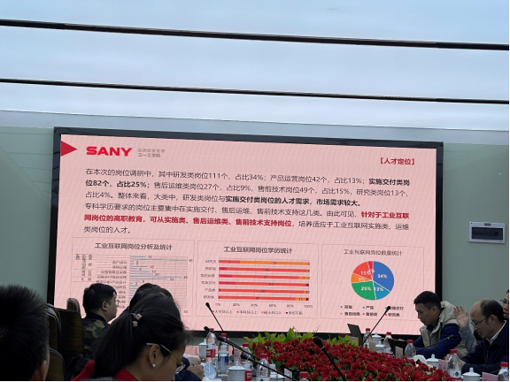 智能制造学院副院长谢楚雄及树根互联总监郑飞通过对国家政策的解读,对国家工程机械智能制造专业群建设的研究,对相关领域学生市场就业情况的大数据分析,结合三一集团的实际情况,就智能制造学院工业互联网专业核心课程开发,专业教材选择,学生考核培养等方面进行了详细的介绍,并结合树根互联的行业经验,现场展示了智能制造学院根云学习平台的特色功能。