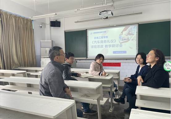 4月15日上午,机电工程学院邀请湖南省课程思政示范课程《汽车商务礼仪》课程团队的企业兼职老师--三一重工研究院魏志魁,就“如何建设课程思政示范课程”进行研讨。本次会议由机电工程学院副院长左光群主持,课程团队全体教师参加。