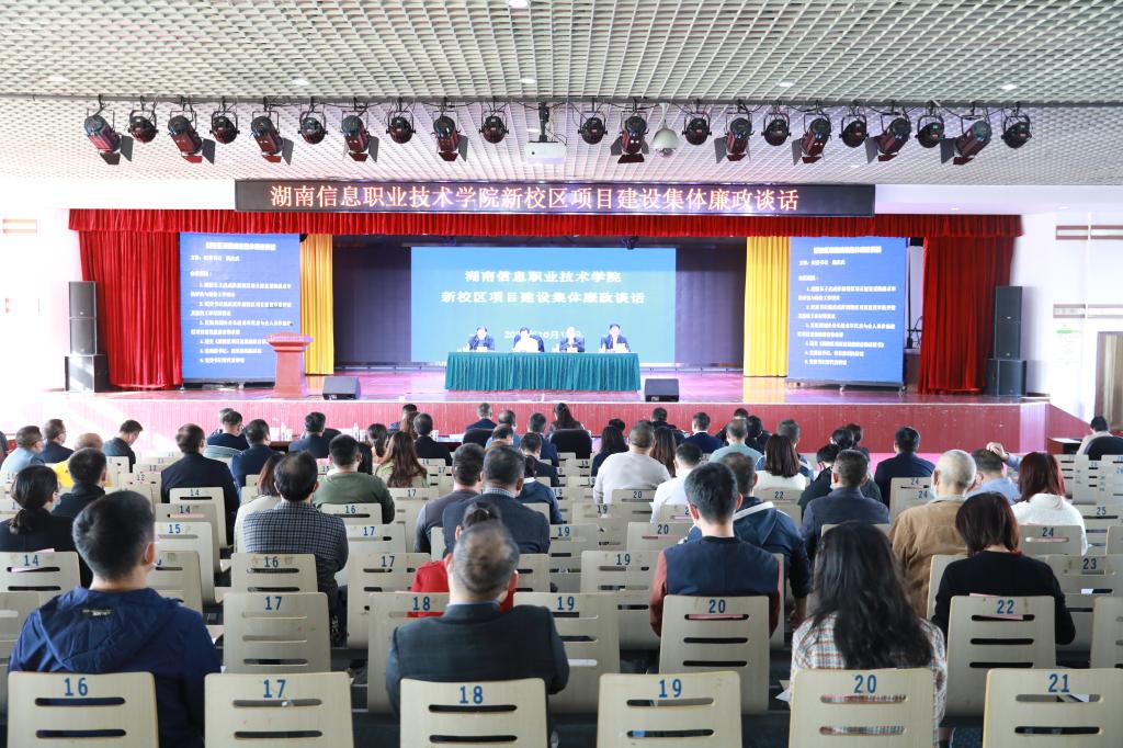 为深入推进“清廉湘信”建设,提高党员干部廉洁自律意识,有效防范新校区项目建设廉政风险,10月12日,我院召开新校区项目建设集体廉政谈话会议。学院党委书记贺代贵,党委副书记、院长陈剑旄出席会议并讲话,党委委员、纪委书记姚庆武主持会议。全体院领导、相关部门负责人及所有项目责任人参加会议。