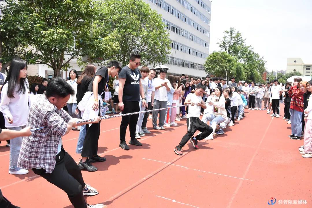 为进一步丰富大学生的校园文化生活,发扬团队精神,增强组织凝聚力,5月24日,beat365英国官方网站经管院团总支学生会举办了一场别开生面的拔河比赛。本次比赛一共24组,以班级为单位进行,每班上场比赛队员为12人(男生5名,女生7名)。其他同学进入看台观看比赛。比赛采用晋级式轮比,三局两胜,胜者晋级下一轮。