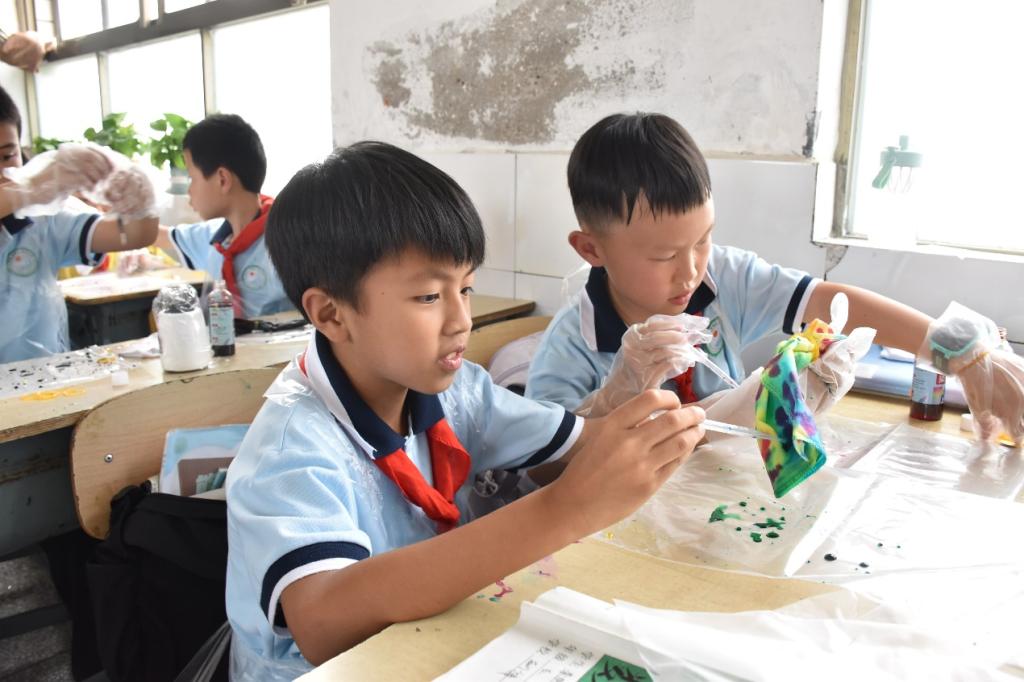 志愿者们分为剪纸、扎染、衍纸、脸谱4支宣传队伍,分别进入了4个班级进行宣讲。160余名小朋友积极参与,表现出对非遗文化的热爱,在青年大学生志愿者指导下,小朋友们制作出了多种多样的艺术作品。