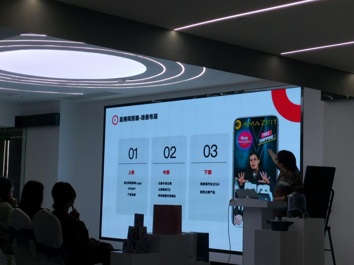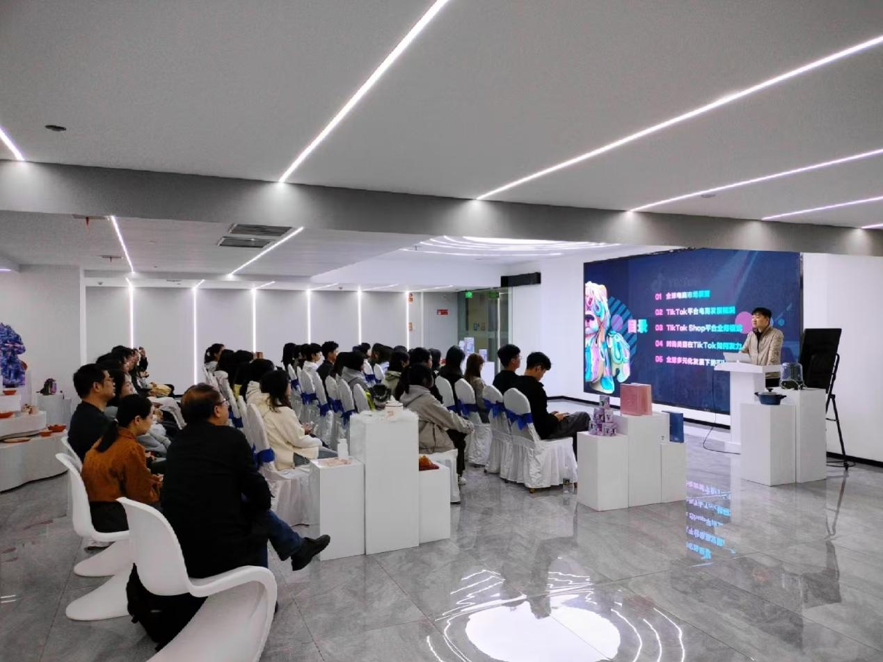 当日上午,湖南国传电子商务有限公司为学生们准备了一场别开生面的行业资讯分享会。企业导师、湖南国传跨境电商直播基地董事长周红君以《蓝海机遇TikTok全球市场多元化布局》为题,结合丰富的行业经验和深厚的专业知识,为学生们介绍了最前沿的跨境电商发展动态和市场趋势,深入剖析了欧洲、美洲、东南亚等市场的消费习惯与热门产品。周红君的讲解,让同学们更加直观地感受到行业的魅力和潜力。现场互动环节,大家纷纷提出自己的疑惑点,现场交流氛围热烈而融洽。