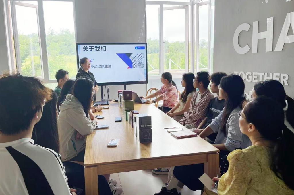 活动伊始,百创佳(优享8点)创始人为师生团队带来了一场生动的品牌分享会,讲述了创立初心、发展历程、核心经营理念等,并详细介绍了主营产品特色与市场定位,让学生们感受到实体企业家的情怀与担当,更让他们对品牌文化塑造、产品价值挖掘有了更深层次地认知。 师生团队零距离探访了企业生产车间与产品展厅。学生们亲眼见证了产品从原材料到成品的生产工艺流程和品质管控细节,特色产品和场景化陈列直观展示了企业的市场定位与品牌调性。这种“从制造源头到市场终端”的全链条参观,让学生们得以跳出课本,真切触摸产业发展的现实脉搏,深刻理解产品力、供应链管理对电商运营的底层支撑作用。