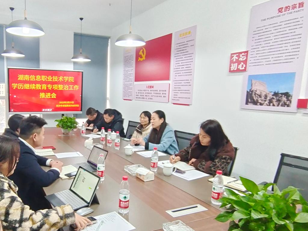 2023年2月21日下午,学校副院长刘志红、继续教育学院及纪检监察处相关工作人员一行来到我校校外教学点长沙市卓越聚英专修学院就进一步推进学历继续教育专项整治工作召开专题会。