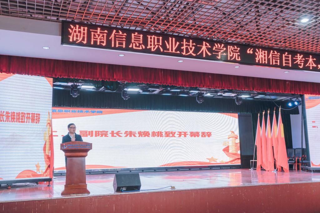 朱焕桃副院长在开幕词中用亲切的语言对同学们表达了希望与祝福:“希望受表彰的同学再接再厉,再创佳绩;希望同学们以榜样为引领,砥砺奋进,通过自考本科学历提升充实自我、提升自我、提升核心竞争力。