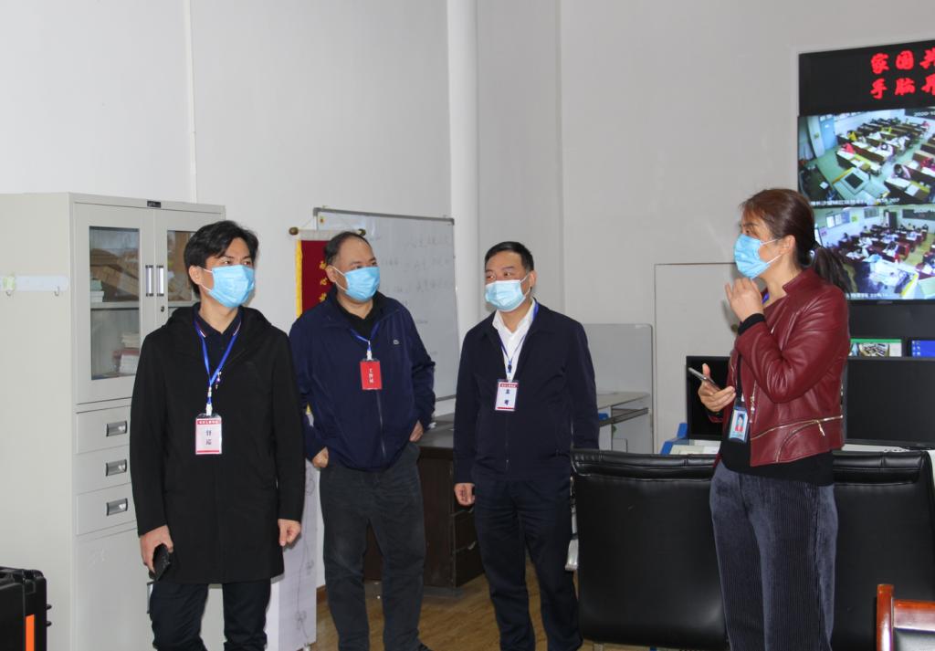 长沙市人社局党委委员、副局长谭明江(左一)、长沙市考试指导中心主任文星初(左二)巡视监控中心