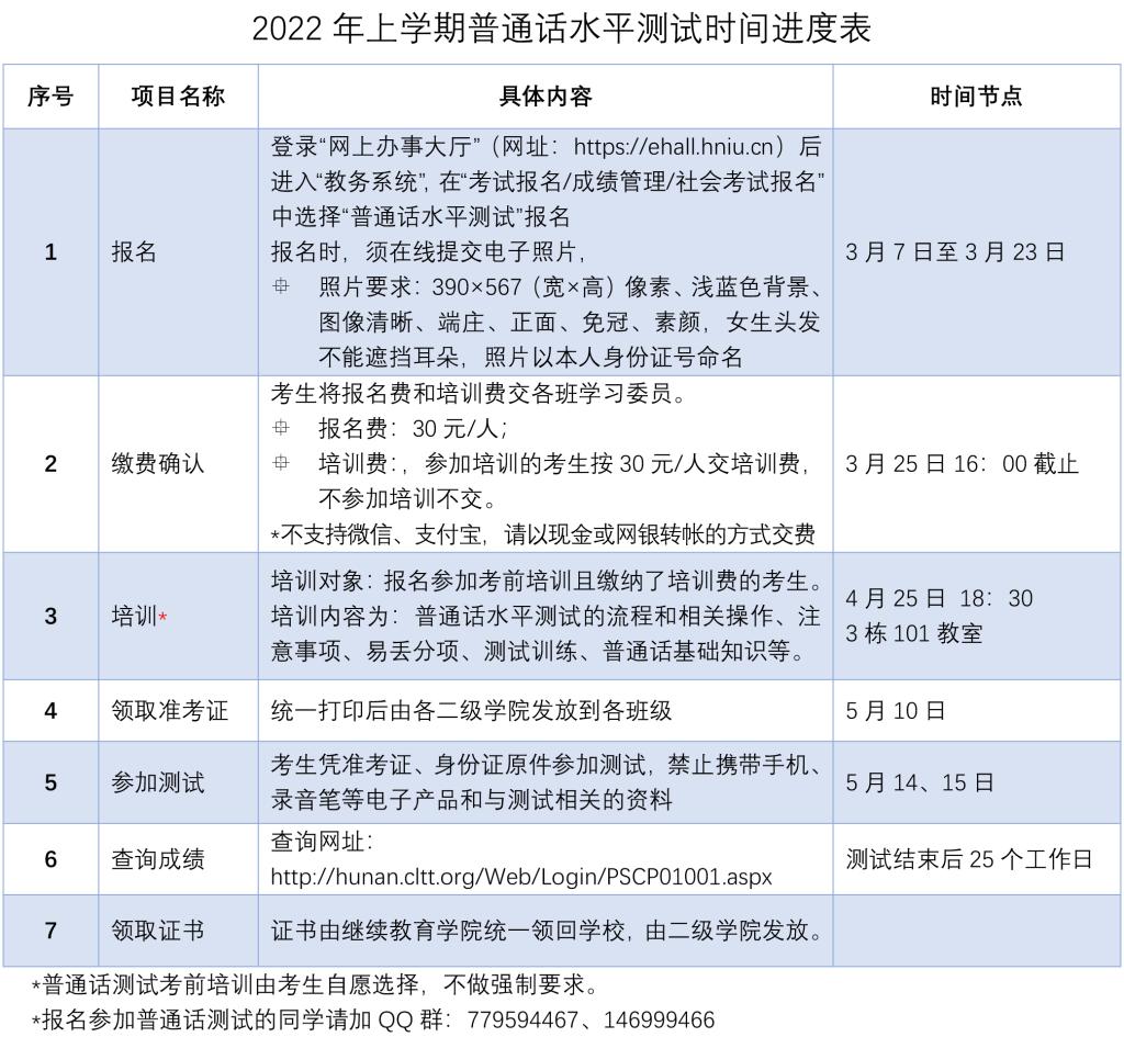 2022年上学期普通话水平测试工作安排