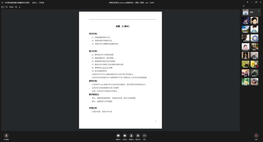 学院领导高度重视本次教学能力竞赛培训分享交流会,全体新进教师积极参加,精心准备。每位老师分享2-4个课时的教学设计,分享结束后,院领导结合分享教案进行提问,重点从教学目标、学情分析、重难点的把握、内容与策略等方面进行了综合点评。