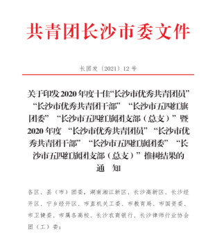团市委公布了2020年长沙市优秀共青团员、团干部、团支部。其中,beat365团总支荣获“2020年度长沙市五四红旗团支部(总支)”称号。