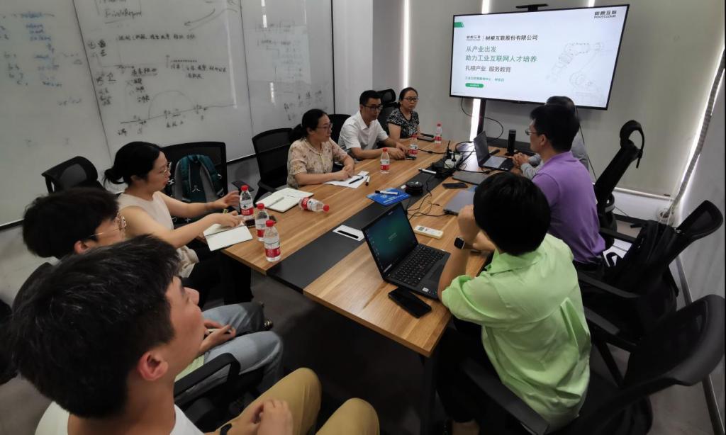 深化产教融合,助推区块链技术应用专业发展与内涵提升,6月27日湖南信息职院软件学院彭顺生院长带队一行7人走进树根互联股份有限公司(以下简称“树根互联”),共谋区块链技术人才培养。