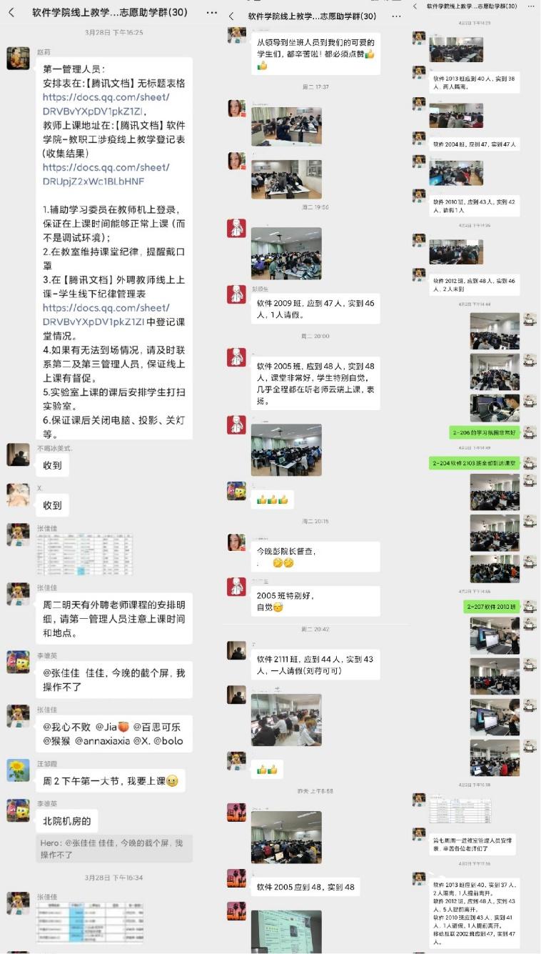 “虽然3个星期没有出校门,但疫情并未对我们的生活与学习带来影响,有黄丽老师对我们知心陪伴与叮嘱早晚健康自测……相信解封就在不远处”软件2111班的颜毅同学如是说;“对线上上课有什么好的建议,课堂知识点如有不懂之处,可以在周六的上课班级跟班实践学习,依然可以向线下辅导老师请教”。党员服务小分队的郭老师们叮嘱学生一定要学懂弄通。