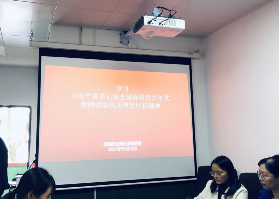 2021年10月12日下午2点,思政部全体教师在思政会议室组织了“习近平总书记给全国高校黄大年式教师团队代表重要回信精神”的学习活动。