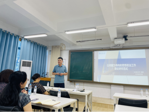 艾教授围绕《以问题为导向的思想政治工作理论研究范式》从“立足教学实践,开展理论研究;坚持问题导向,进行学术提升;关注理论前沿,厚实研究功底”三个层面进行了分享。他强调,要以问题为导向,研究出成果,成果进课堂。以研究深化教学,以教学促进研究。艾教授的讲座案例引用丰富翔实,语言表达深入浅出,以扎实的理论功底,敏锐的学术眼光,丰富的科研教学经验,让在座老师们获益匪浅。大家纷纷表示,要坚持研教一体,教学与科研应齐头并进,实现教学与科研的相辅相成,用科研支撑教学,以教学反哺科研。让教学问题学术化、科研成果教学化。