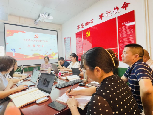 会议组织开展了9月的主题党日,由王春红老师进行暑期井冈山研修学习经验分享,王老师以“弘扬井冈山精神 担当铸魂育人使命”为主题从放射时代光芒、开放教学资源、丰富教学方法、撰写科研论文四个方面详尽分享了研修的收获和心得体会。大家纷纷表示,要进一步学习领会井冈山精神的深刻内涵和时代价值,增强理想信念,坚定道路自信,把学习成果转化为工作实效,以优异成绩迎接党的二十大胜利召开!