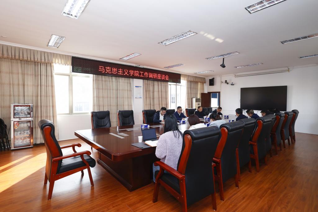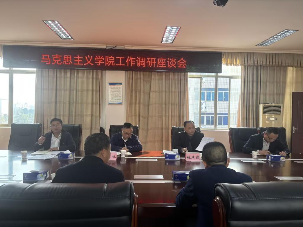 为更加有力推进马克思主义学院工作高质量发展,落实思政课关键课程作用,同时听取部门和一线教师的工作心声和建议,12月9日下午学院组织召开2025年度马克思主义学院工作调研座谈会。院长朱焕桃、纪委书记姚庆武出席会议并讲话。人事处、教务处、科技处、现代教育中心等职能部门领导、马克思主义学院部分教师代表参加会议。