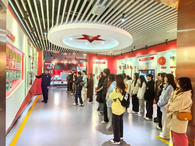 活动中,在消防员的带领下,大家近距离参观了灭火车、抢险车、云梯车等特种救援车辆,详细了解了常用抢险救援器材、灭火器材的性能和使用技能;通过穿戴灭火防护服、体验消防装备器材、爬绳等项目,引导师生在实践中学习安全知识,提高自我防护能力。在消防教育馆,消防员们介绍了该队45年来始终坚持以雷锋精神建队育人,用忠诚信仰扛起使命,荣获“时代楷模”“全国五一劳动奖状”“全国青年文明号”“全国学雷锋模范消防大队”等340余项国家、省、市级荣誉的光荣队史,一幅幅生动的图片、一段段感人的事迹,让大家深受触动,对消防员们的英勇无畏和无私奉献精神表示由衷的敬佩,让同学们对“对党忠诚、纪律严明、赴汤蹈火、竭诚为民”的消防精神有了更深刻的理解。同时,消防员们采用“讲、传、教”相结合的模式,借助VR沉浸式体验,帮助大家正确认识各类消防标识、了解日常生活中潜在的消防隐患,通过身临其境的体验更加深刻理解了深刻理解了火灾的危险性和防火自救的重要性,更加深刻理解了校园火灾案例和校园火灾特点,丰富了大家的应急知识储备。