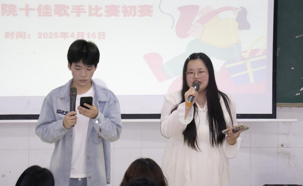4月16日午间,文化传播与艺术设计学院"文声共绘,传唱未来"十佳歌手初赛在南25-T101教室举行。这场由学院精心策划的艺术盛宴,通过"个人+组合"双赛道创新模式,搭建起多层次的艺术展示平台,让百余位学子在音符跃动间展现新时代青年的艺术风采。