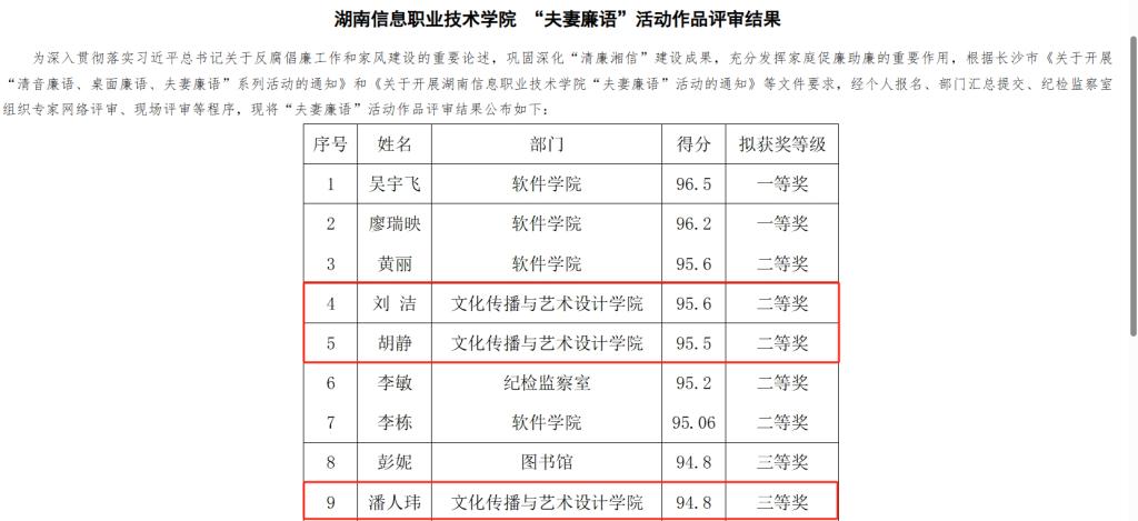 为进一步贯彻落实习近平总书记关于全面从严治党的重要论述,持续深入开展“清廉湖南”、“清廉长沙”、“清廉学校”创建活动,充分发挥校园廉洁文化的激励感召作用,巩固深化“清廉湘信”建设成果,学院纪委及纪检监察室于2023年10月组织开展了“夫妻廉语”活动。