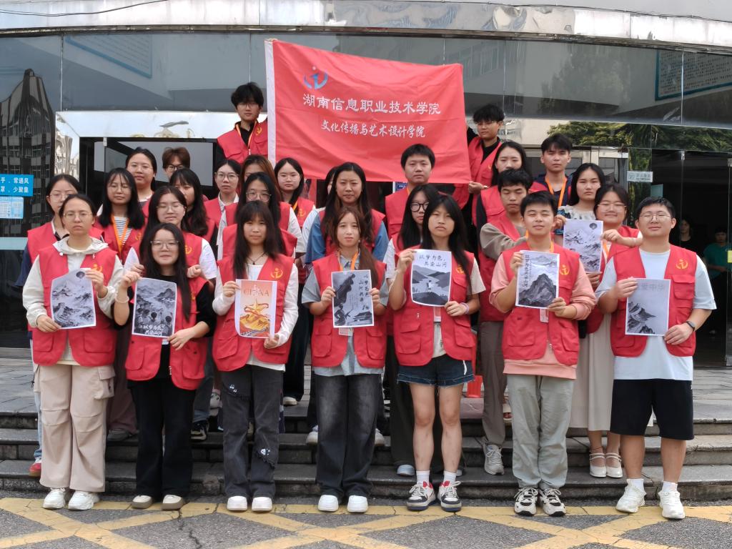 活动中,学子们充分发挥专业特长,通过数字艺术与手绘创作相结合的形式,他们运用绘图软件勾勒巍巍青山、浩荡江河,以炽热色调表达对祖国的热爱;手绘面则以细腻笔触刻画奋斗身影、时代成就,用简洁线条再现英雄群像,每一笔都是对祖国的深情礼赞。