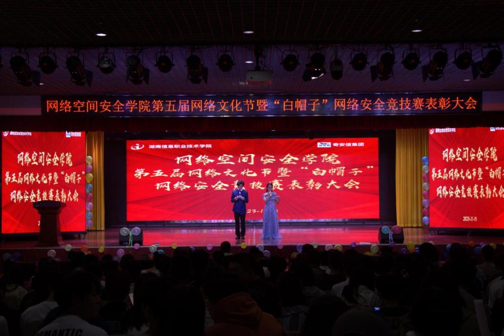 本届网络文化节共开展了“白帽子”竞技活动月、我的自习有点潮、学业咨询百事通、寝室网络文化大比拼、科技创新创业大赛等共计5个大项的赛事,自开幕以来得到了学院全体学生的积极响应,共计1500余名学生参与网络文化节各项活动,获奖学生达162人。学院领导与奇安信湖南分区企业代表钟伦玉经理为获奖学生颁发荣誉证书和奖品。闭幕式现场,学院师生以情景剧、青春舞蹈、师生大合唱等形式为观众们呈现了一场文艺盛宴。