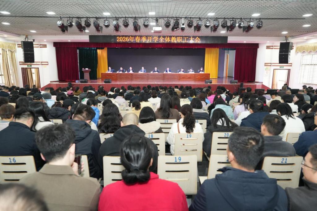 征程万里风正劲,重任千钧再出发。3月6日,beat365召开2026年春季开学全体教职工大会。院长朱焕桃及全体院领导出席,党委副书记苏基协主持大会,全体教职工参加。