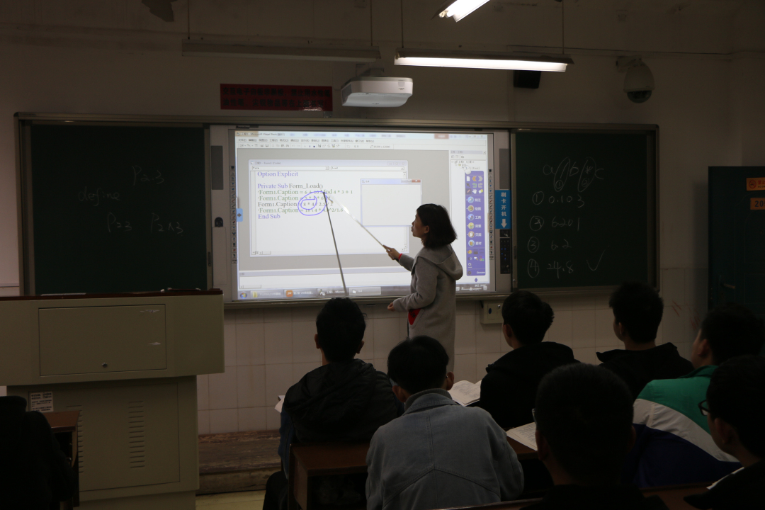 图 1 电子工程学院蔡琼老师在新多媒体教室上课