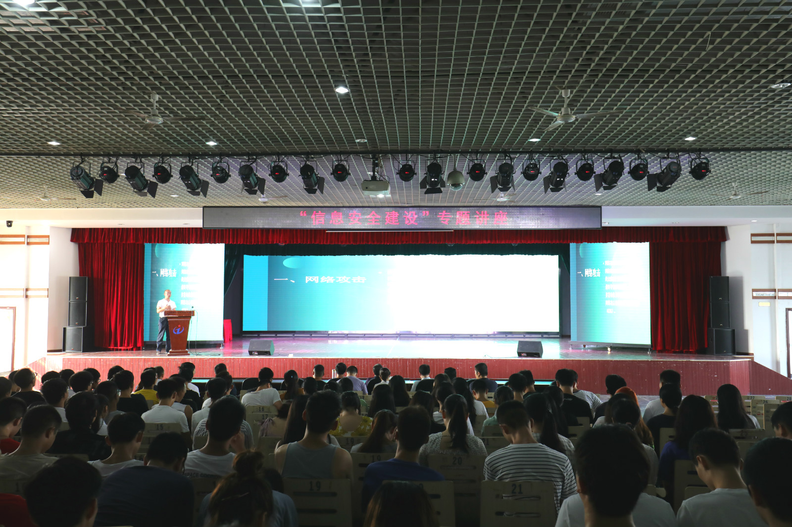 为深入宣传贯彻习近平总书记关于网络强国的重要思想,全力做好新中国成立70 周年大庆网络安全保卫工作,根据《关于开展2019年国家网络安全宣传周活动的通知》(湘网办发〔2019〕9号)精神,紧扣“网络安全为人民,网络安全靠人民”的主题,做好我校网络安全宣传周活动,9月11日下午现代教育信息中心与网络空间安全学院在多功能报告厅举办了“信息安全技术”专题讲座,讲座由原国防科技大学计算机学院副教授、现长沙市信息协会会长、国家网信办咨询专家尹俊文教授主讲。学院党委书记赵兴舟和副院长高鸿出席会议,现代教育中心全体人员及网络安全学院部分专任教师、辅导员和2018级部分学生参加。