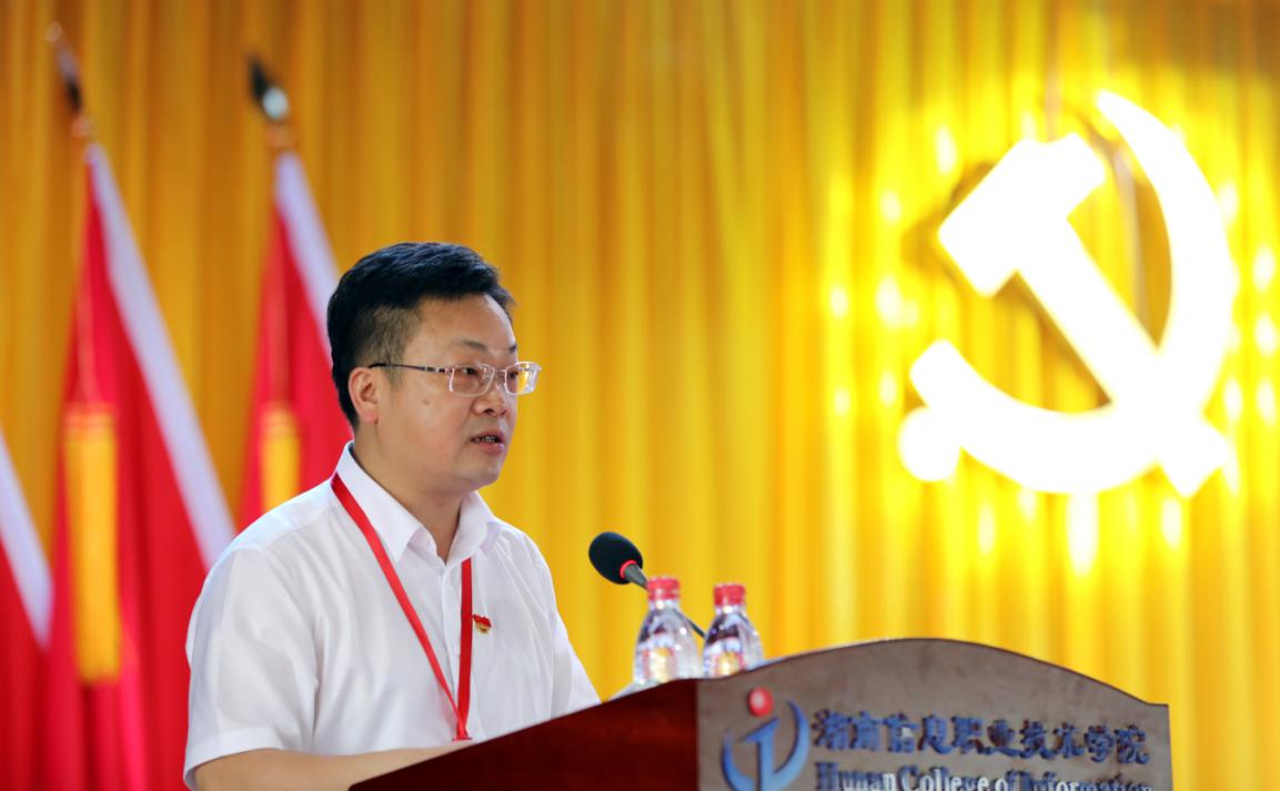 长沙市委组织部副部长杨俊代表中共长沙市委组织部部务会对大会的召开表示热烈的祝贺。他指出,学院自2017年移交长沙市以来,在市委、市政府的正确领导下,牢记为党育人、为国育才教育初心,不断加强学院内涵建设,学院事业发生了深层次、根本性的变革,取得了全方位、开创性的成就。学院党建和思想政治工作基础不断夯实,政治生态持续好转;专业群建设紧扣长沙产业发展脉搏,信息特色不断凸显;学院师资队伍结构进一步优化,招生就业成绩不断创新高,立德树人成效显著,师生竞赛捷报频传,各项事业发展迈上了新的台阶。他代表市委组织部对学院接下来的发展提出四点建议:要坚持党的领导,圆满完成换届各项任务;要坚持全面从严治党,不断加强党的建设;要坚持依法治校,全面推进学院综合改革;要坚持内涵建设,更好地服务经济和社会发展。
