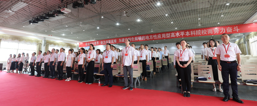 他在报告中号召,全院上下继续高举习近平新时代中国特色社会主义思想伟大旗帜,勠力同心、砥砺奋进,乘势而上、加快发展,为把学院建设建成地方性应用型高水平的本科院校而不懈奋斗。